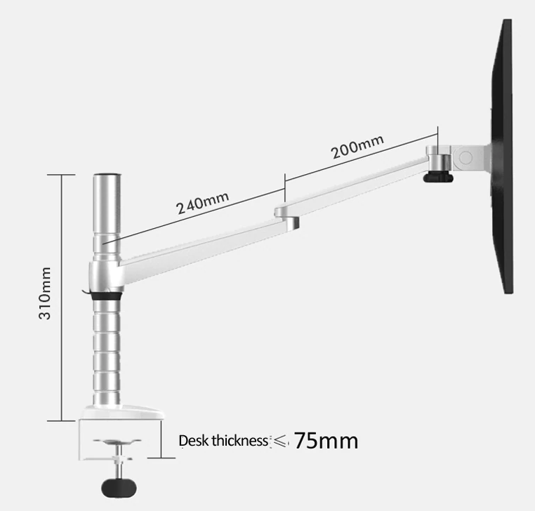 - Desk Types: Compatible with desktops up to 2.95 inches (75 mm) thick for clamp mounting.